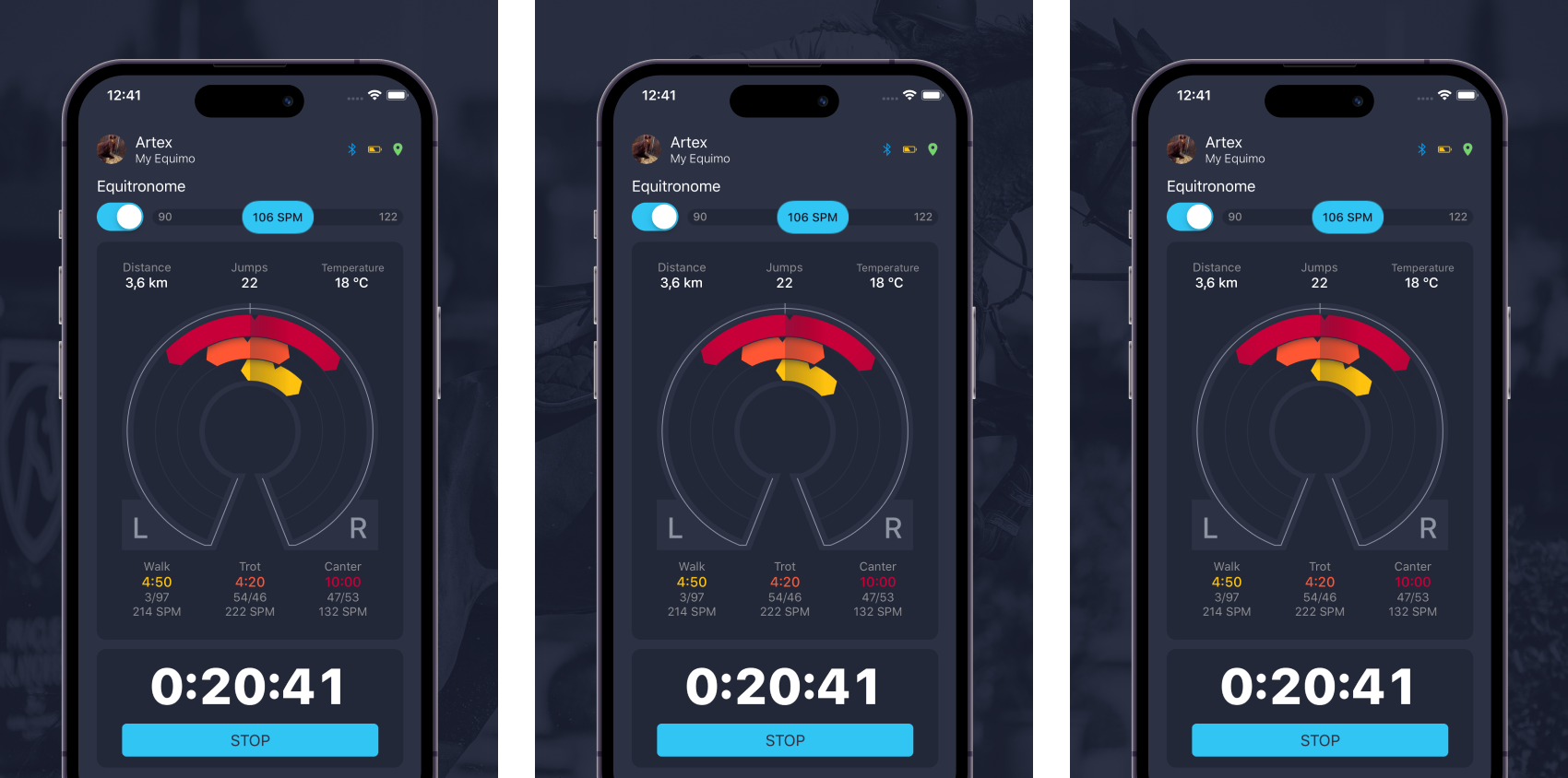 Na ekranie możesz zobaczyć nagranie wyraźnie niezrównoważonej sesji treningowej. Ponad 80% ruchu we wszystkich chodach odbyło się na lewej nodze prowadzącej. Jeśli to nie było zamierzone, a jeździec nie próbował niczego kompensować, mogło to spowodować potencjalny problem. Przedłużona nierówna praca prędzej czy później objawi się kontuzją lub problemami zdrowotnymi.
